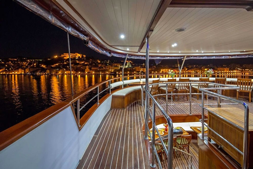 Menü seçimi konusunda teknelerin imkanları ölçüsünde tamamen sizin hazırladığınız liste uygulanır. Bu liste ile ilgili kumanya verilecek fiyatların dışında olup yeme içme kumanya alışverişini tercihinize göre tur başlangıç noktasına ulaştığınızda kendiniz yapabileceğiniz gibi tur öncesi görüşmelerimizde belirlenen alışveriş bizim tarafımızdan yapılıp fatura karşılığı sizden ödemesi talep edilebilir. Daha önceki tecrübelerinizden de bildiğiniz gibi teknede yemekle ilgili alışveriş için miktar tekne personeli de eklenerek ayarlanmalıdır. Tur esnasında teknede yemeklerin hazırlanması ve servisi tekne personeli tarafından sizin belirlediğiniz saatlerde ücretsiz olarak yapılmaktadır.