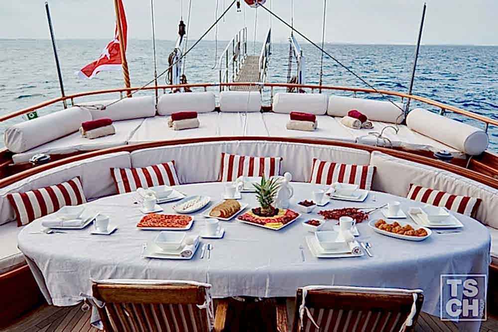 Mavi yolculuk yat kiralama süresince yemeklerin hazırlanması ve servisi tekne personeli tarafından ücretsiz olarak yapılmaktadır.