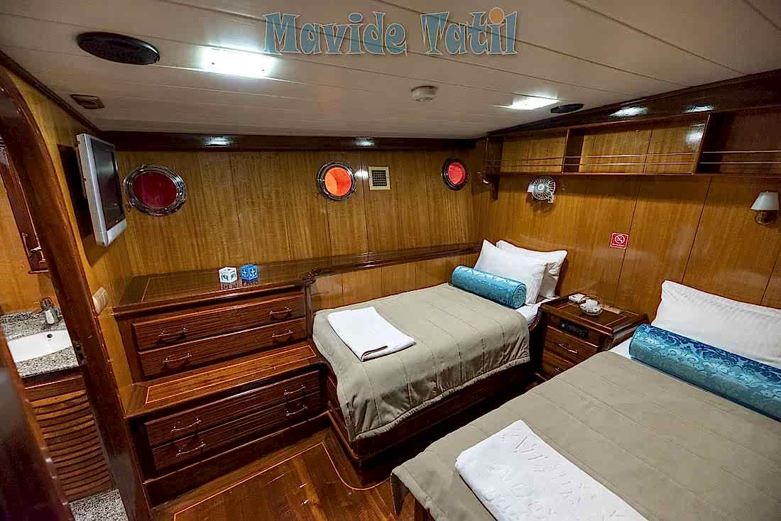 2 master, 2 double ve 2 twin kamaranın tamamında klima, tv, dvd, ses sistemi, duş, tuvalet ve saç kurutma makinesi bulunmaktadır.