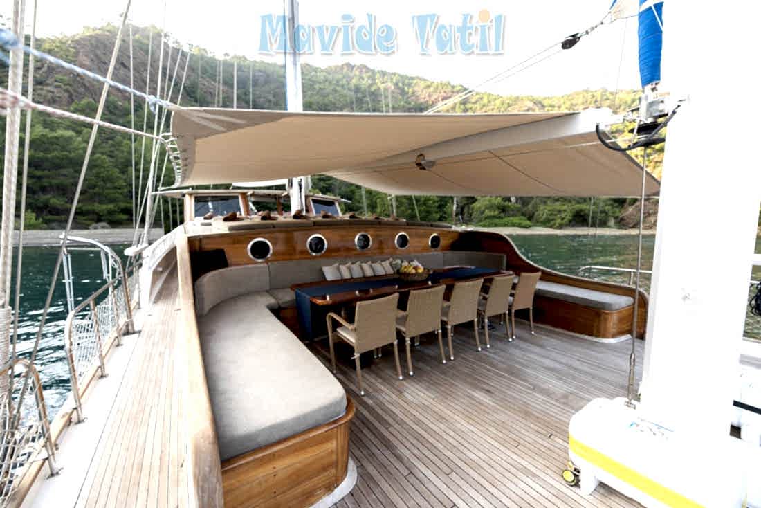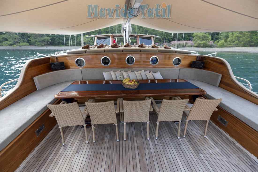 30 metre, 6 kamara 12 kişilik haftalık kiralık yat Kayhan 8 Gulet Fethiye yat kiralama.