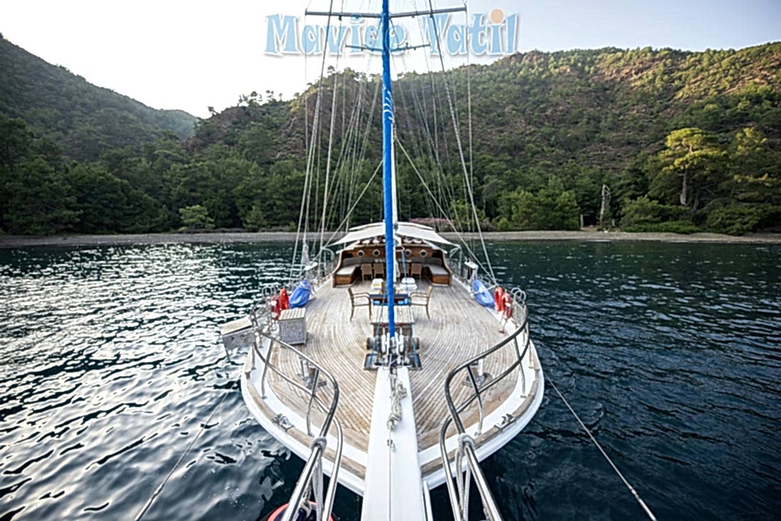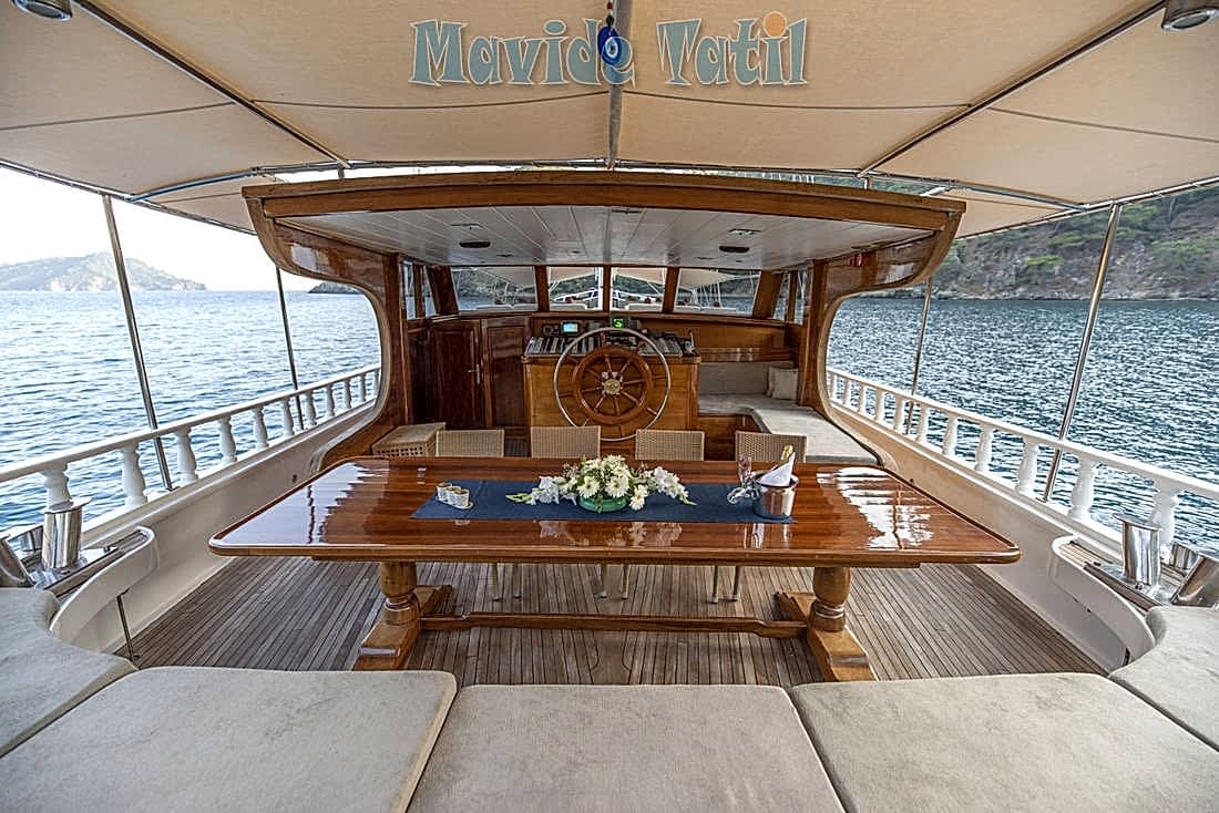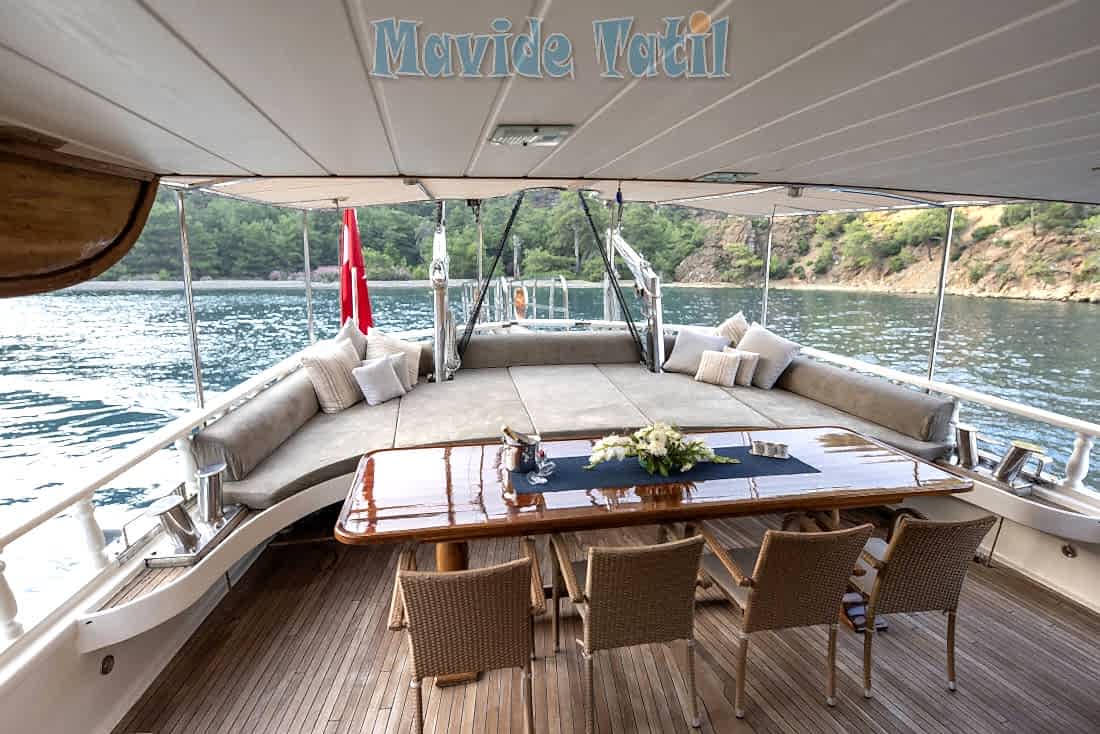 Düz güverte yapısı sayesinde Göcek yat tatili geniş bir güneşlenme ve zaman geçirme alanı sağlamaktadır.